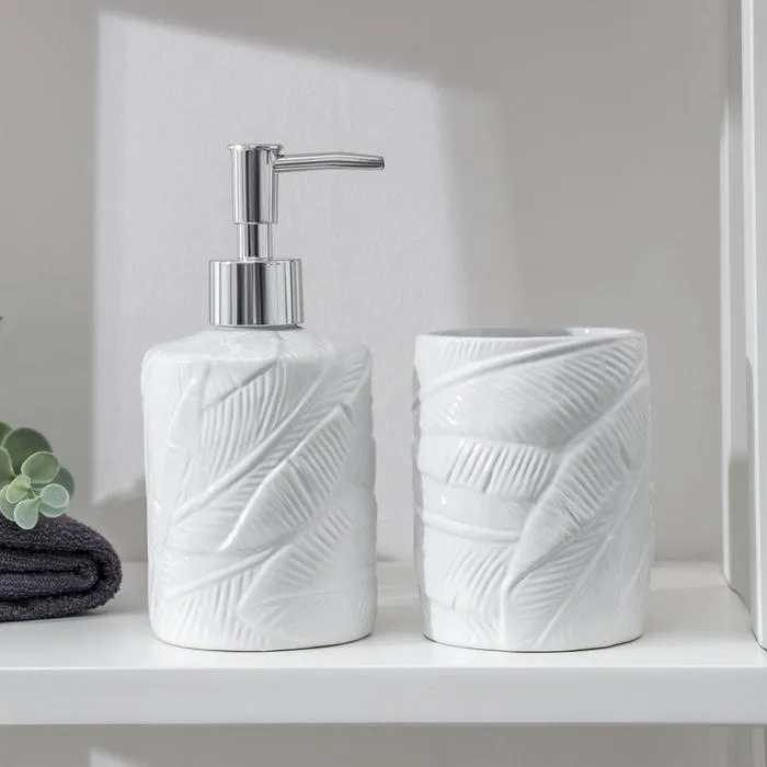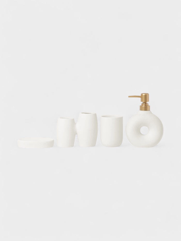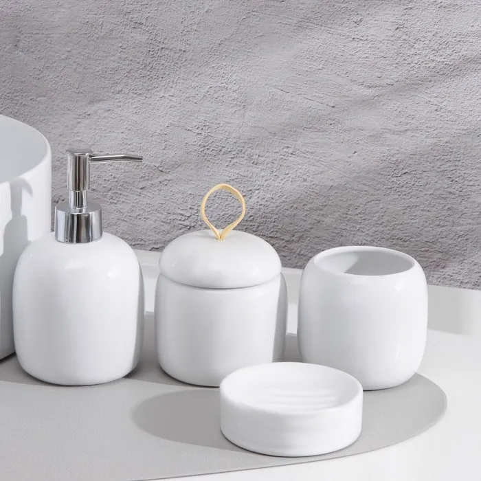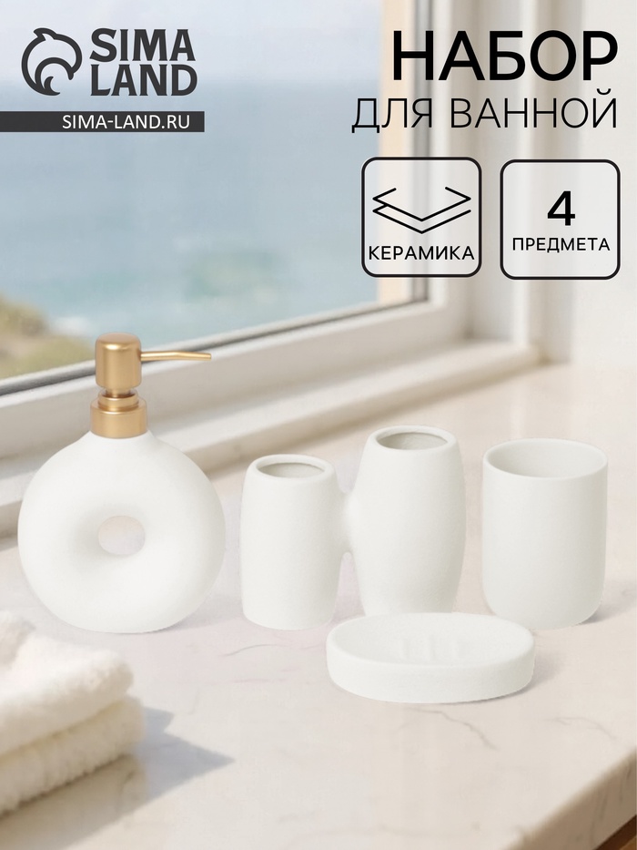 Набор аксессуаров для ванной «Рассвет» из 4 предметов - практичное решение для организации пространства. В комплекте: мыльница, дозатор для мыла и 2 стакана из белой керамики. Минималистичный дизайн без рисунков подойдет к любому интерьеру, создавая атмосферу чистоты и свежести.