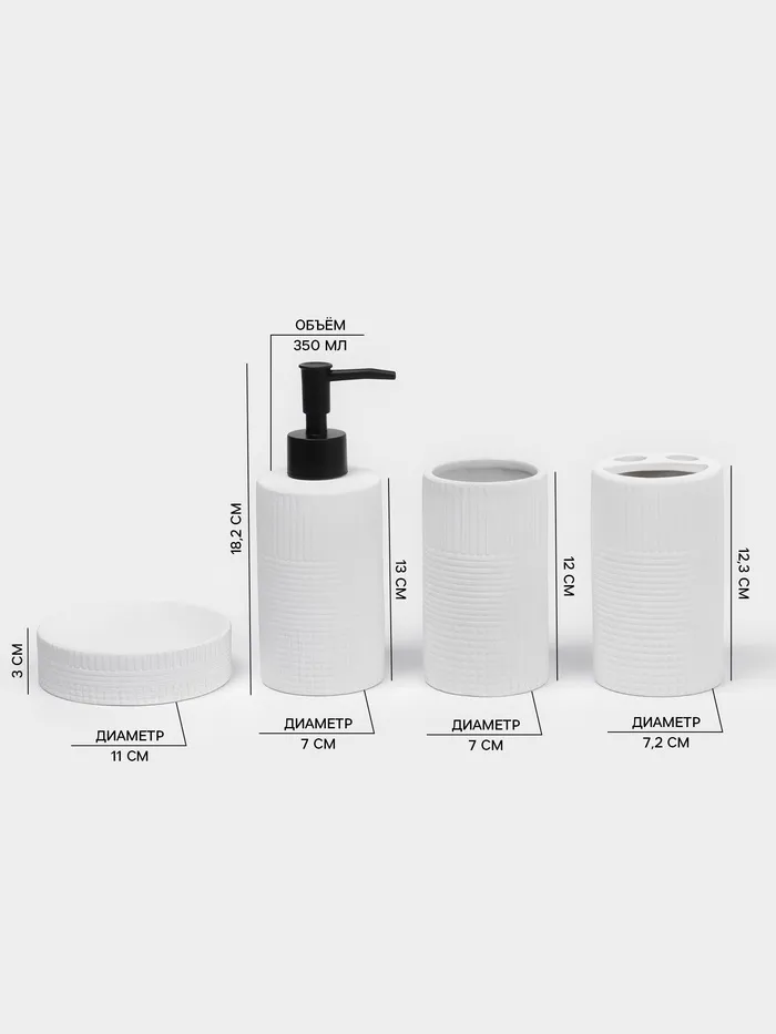 Набор аксессуаров для ванной «Рассвет», 4 предмета, мыльница, дозатор для мыла, 2 стакана, белый — Характеристики