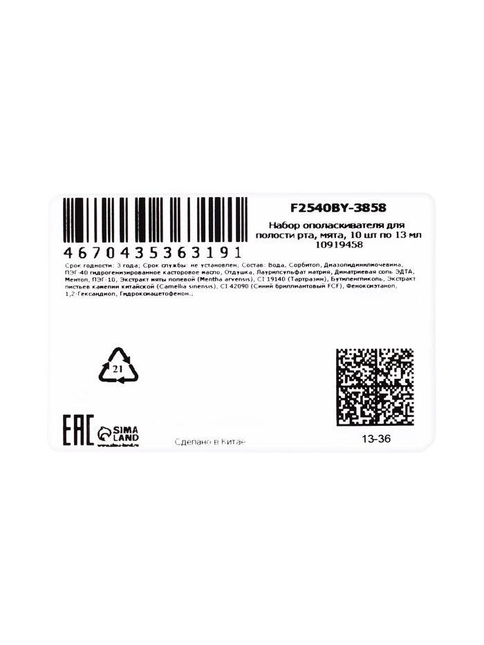 Каждый стик содержит 13 мл готового к применению средства — оптимальный объём для одного полноценного полоскания. Индивидуальная упаковка обеспечивает высокий уровень гигиены, исключает необходимость дозирования и делает продукт идеальным для использования вне дома: на работе, в дороге, в поездках или после приёма пищи.