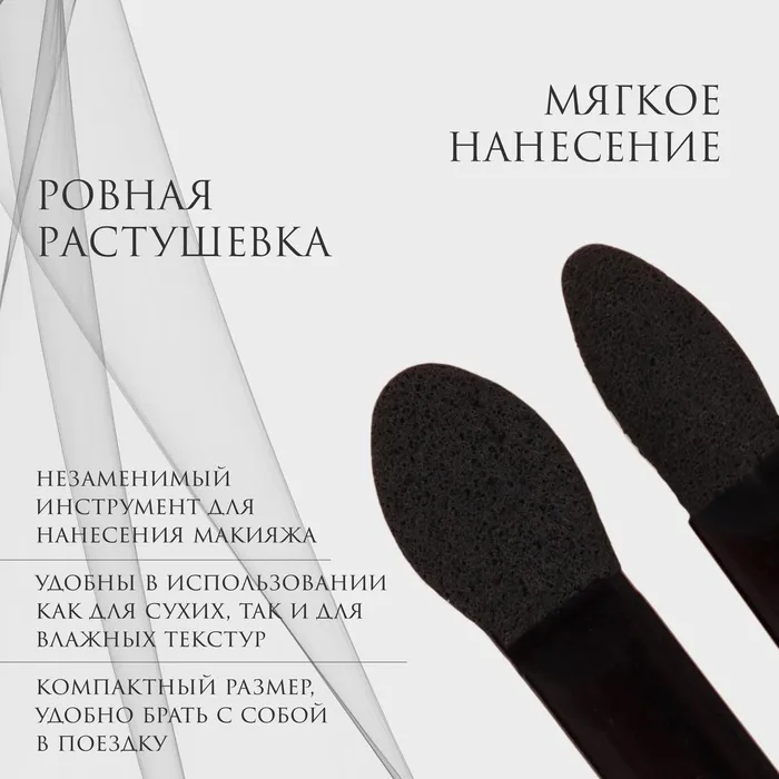 При создании макияжа необходимо правильно расставлять акценты. И если Вы решили сосредоточить внимание на глазах, то вам понадобятся двусторонние аппликаторы. Главное удобство такого аппликатора в том, что на каждую сторону можно нанести свой цвет. И не перебирать кисточки одну за другой, а просто менять сторону аппликатора, нанося необходимый оттенок. Также благодаря мягкой подушечке Вы легко достигнете эффекта smoky eyes, всего несколько лёгких движений, и ваш макияж идеален!