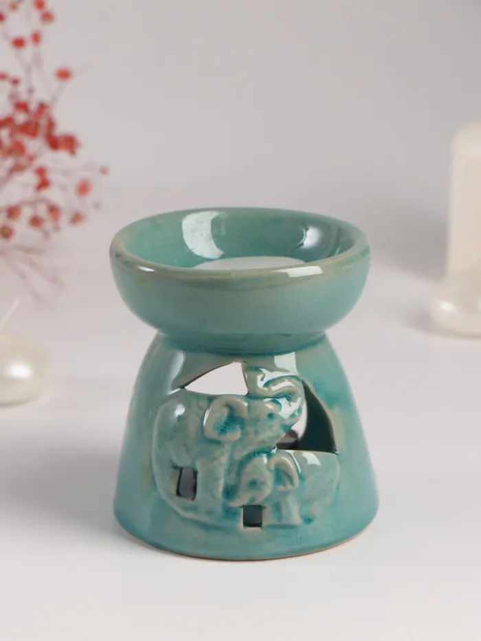 Набор: аромалампа для эфирных масел, мелтс из воска ароматический «Слон со слонёнком», бирюза, 10×10×9 см — Характеристики