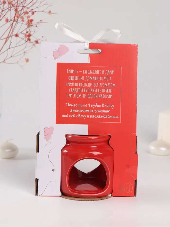 Представляем набор, который станет настоящим воплощением тепла и заботы в вашем доме. В комплект входит стильная аромалампа из керамики в форме цилиндра с очаровательным узором в виде сердец и ароматические мелтсы с тёплым запахом ванили. Этот дуэт не только наполнит пространство приятным благоуханием, но и добавит элегантности любому интерьеру.