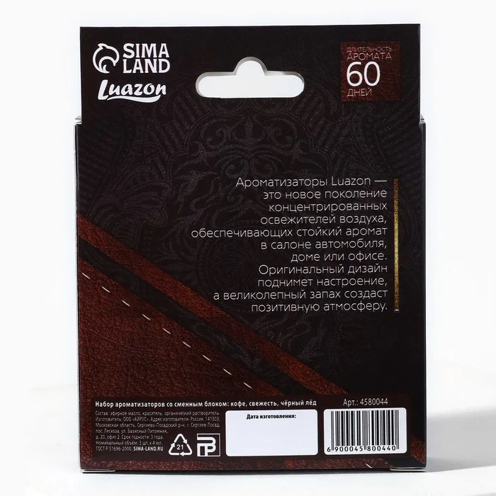 Набор ароматизаторов со сменным блоком кофе, свежесть, черный лёд — Характеристики