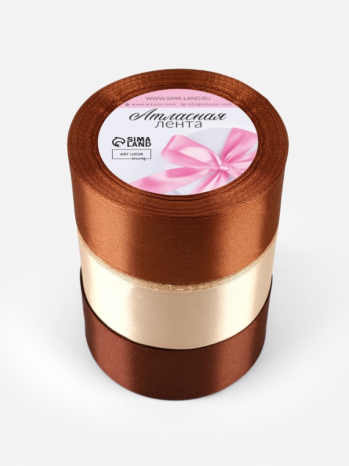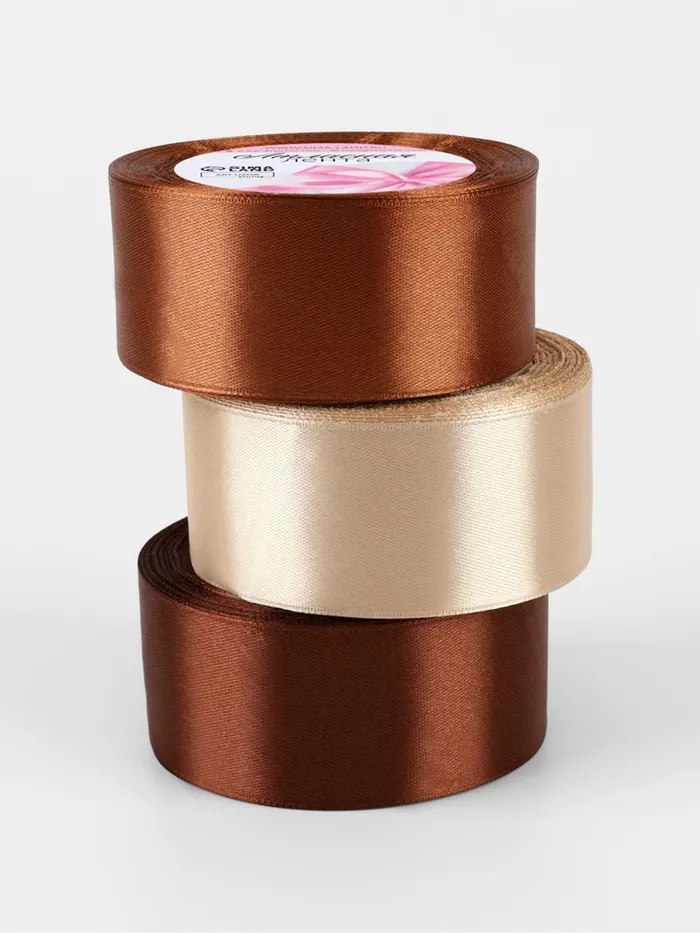 Набор атласных лент, 3 шт., 40 мм, 23±1 м, коричневый, бежевый — Характеристики