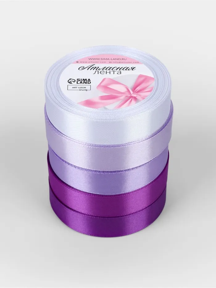 Набор атласных лент, 5 шт., 20 мм, 23±1 м, фиолетовый, сиреневый — Характеристики