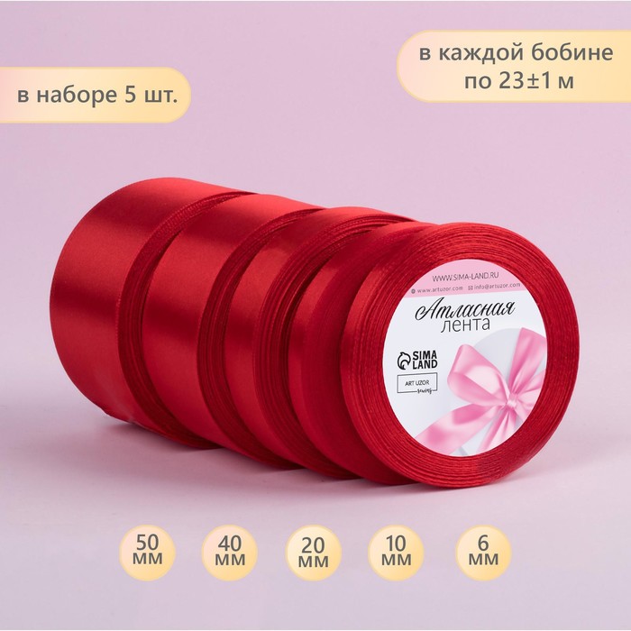 Набор атласных лент, 5 шт., 6 мм, 23±1 м, жёлтый, оранжевый — Характеристики