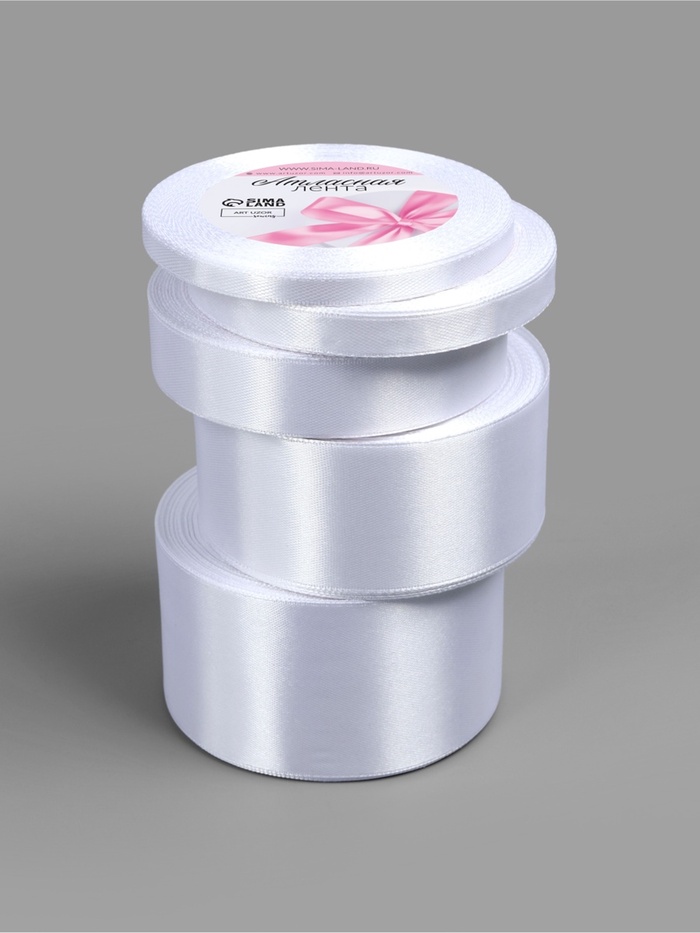 Набор атласных лент, 5 шт., 6/10/20/40/50 мм, 23±1 м, белый — Характеристики