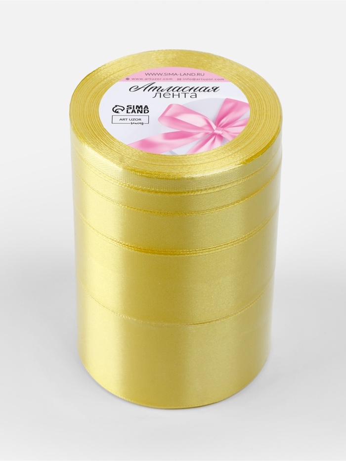 Набор атласных лент, 5 шт., 6/10/20/40/50 мм, 23±1 м, жёлтый — Характеристики