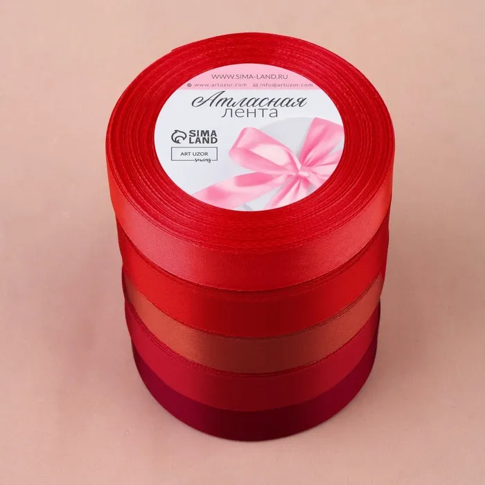 Набор атласных лент, 5 шт, размер 1 ленты: 20 мм × 23 ± 1 м, цвет красный спектр — Характеристики