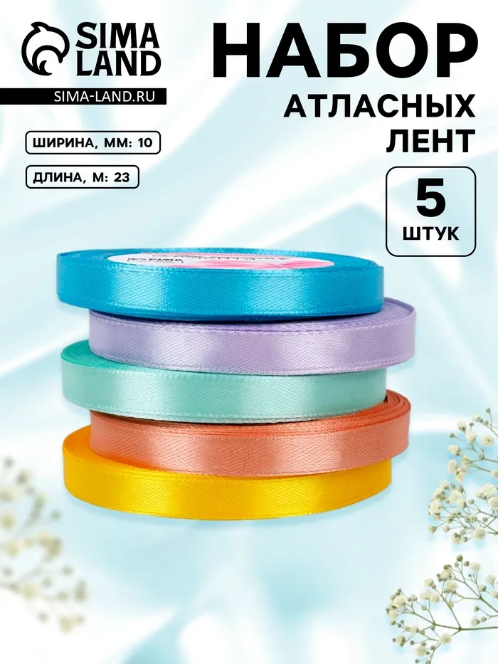Набор атласных лент «Весенний», 5 шт., 10 мм, 23±1 м, разноцветный — Характеристики