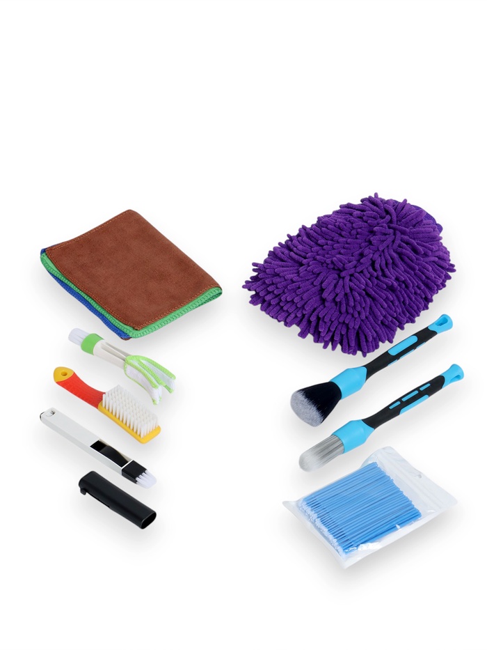 - Полный комплект: все необходимые инструменты для чистки салона автомобиля собраны в одном наборе;