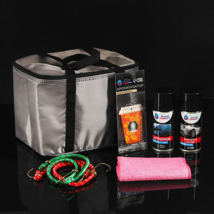 Набор автомобилиста подарочный Grand Caratt в термосумке включает в себя 6 необходимых предметов для каждого водителя. Стильный и компактный дизайн делает его отличным выбором для подарка.