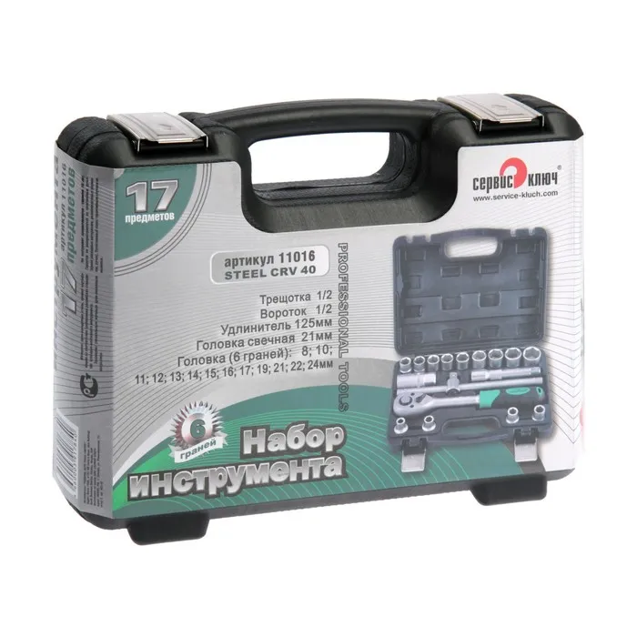 Набор автомобильного инструмента «СЕРВИС КЛЮЧ» 11016, 17 предметов — Характеристики