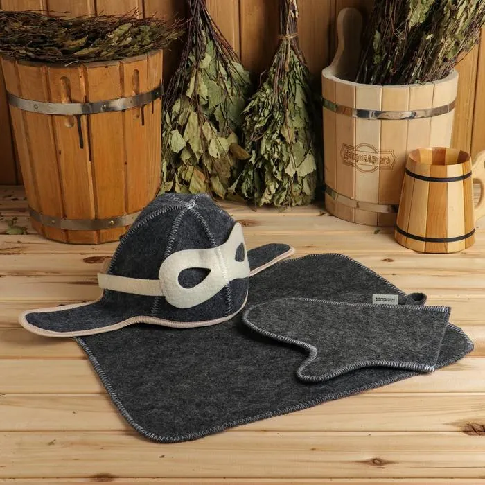 Набор для бани «Лётчик», 3 предмета: шапка, коврик, рукавица, шерсть 30%, полиэфир 70%, серый, «Добропаровъ»