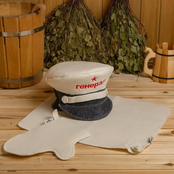 Набор для бани "Генерал" фуражка, коврик, рукавица