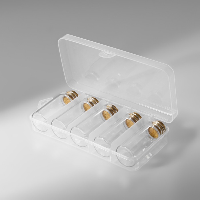Набор баночек для хранения бисера, d=2.1×5 см, 5 шт., в контейнере, 12.8×6.5×2.5 см — Характеристики