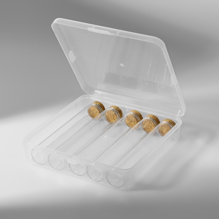 Набор баночек для хранения бисера, d=2.2×12 см, 5 шт., в контейнере, 13.5×13.5×3.5 см — Характеристики