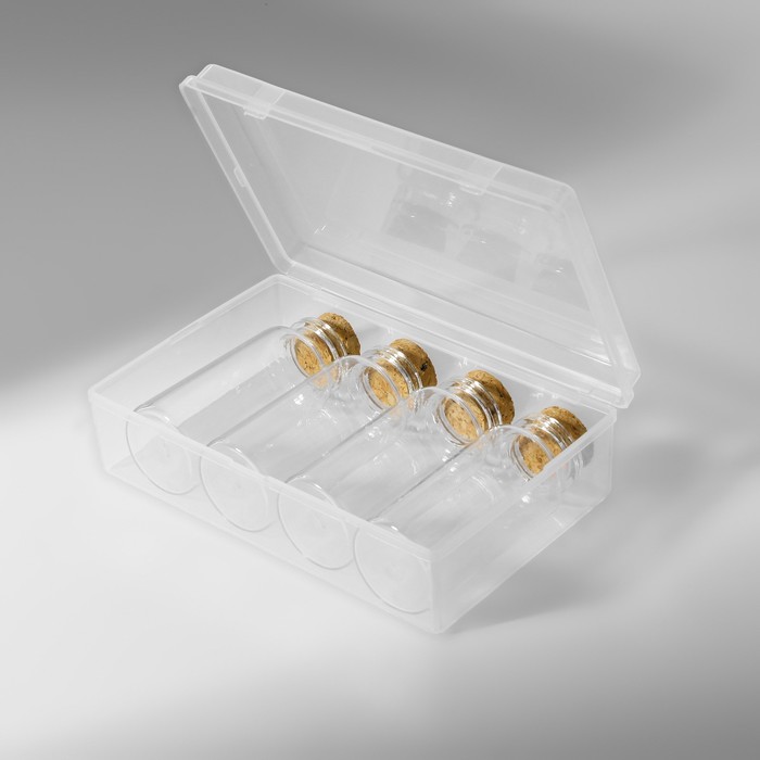 Набор баночек для хранения бисера, d=3×7 см, 4 шт., в контейнере, 13.5×8.7×4 см — Характеристики