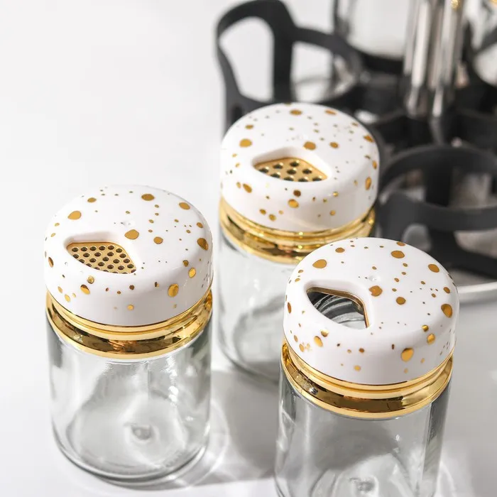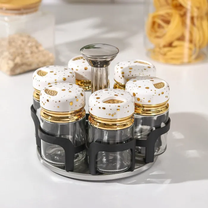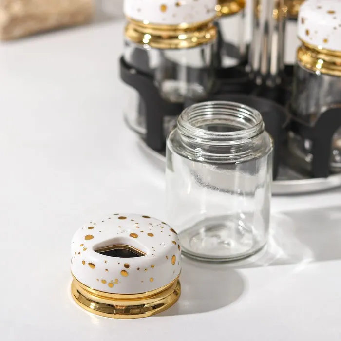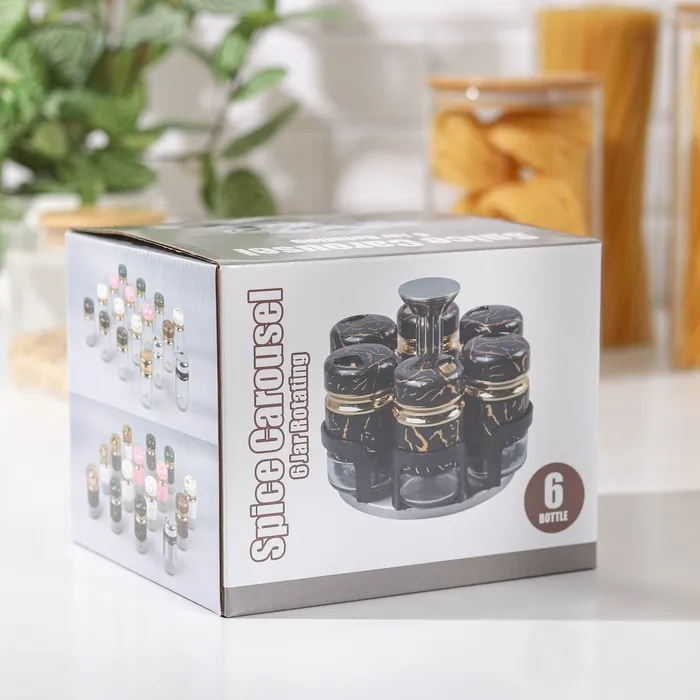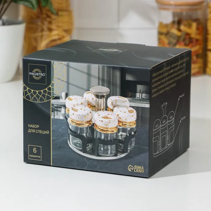 Набор баночек для специй из стекла на подставке Magistro «Белый мрамор», 6 шт, цвет белый — Характеристики