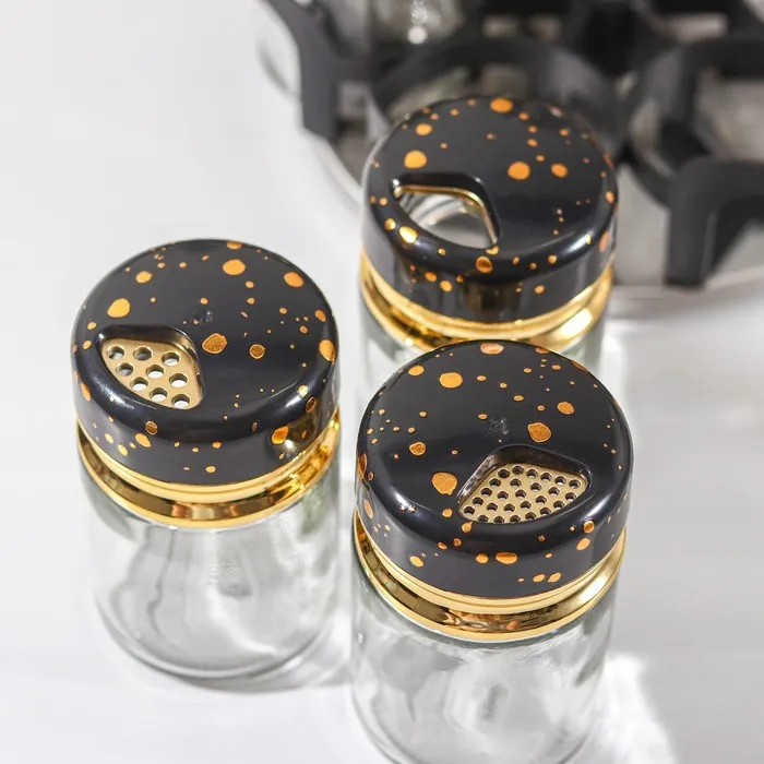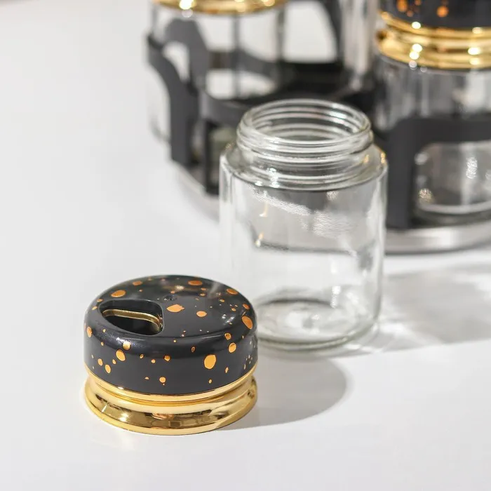 Набор баночек для специй на подставке Magistro «Чёрный мрамор», 6 шт., стекло, чёрный — Характеристики