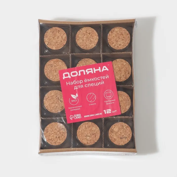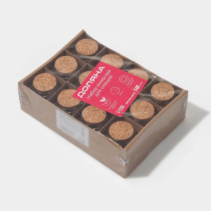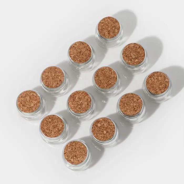 Набор баночек для специй с пробковой крышкой Доляна «Парфе», 200 мл, 7.3×7.2 см, 12 шт., стекло — Характеристики