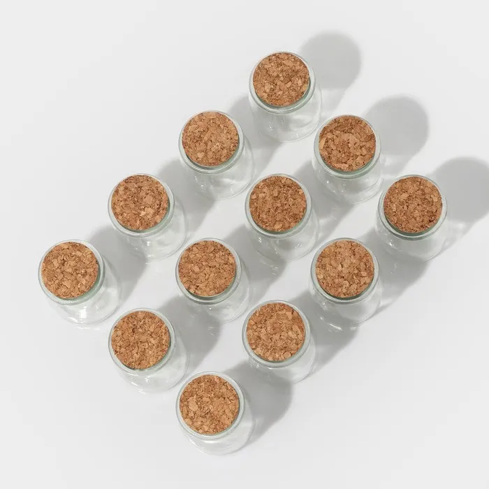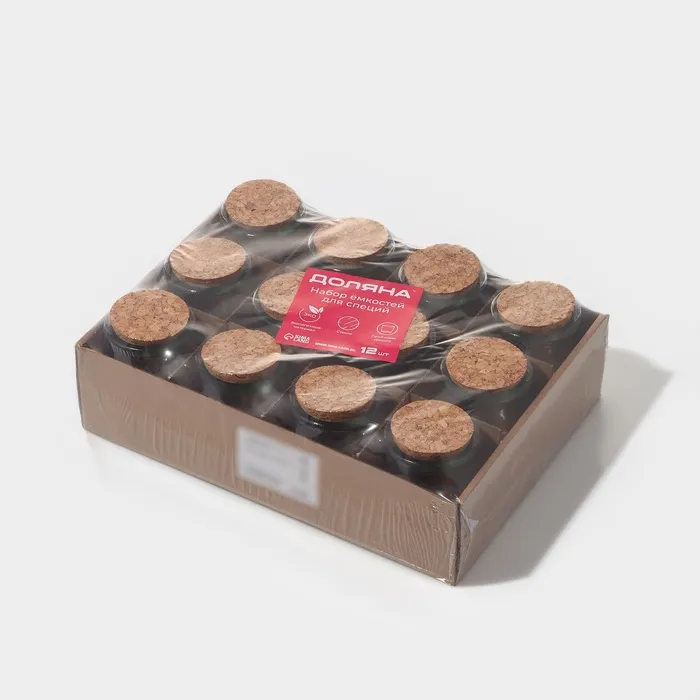 Набор баночек для специй с пробковой крышкой Доляна «Парфе», 200 мл, 7×7×8.5 см, 12 шт., стекло — Характеристики