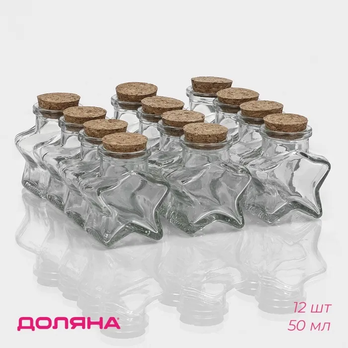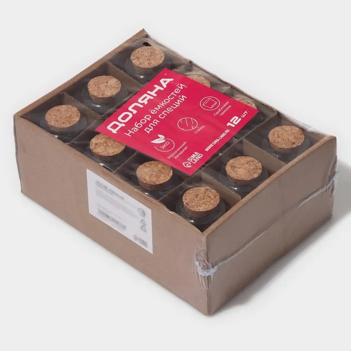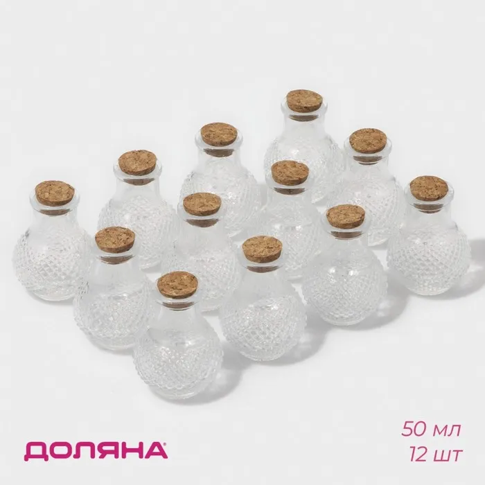 Набор баночек для специй с пробковой крышкой Доляна «Парфе», 40 мл, 4×6.6 см, 12 шт., стекло — Характеристики