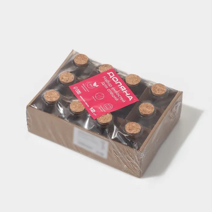 Набор баночек для специй с пробковой крышкой Доляна «Парфе», 50 мл, 4.5×4.5×6.8 см, 12 шт., стекло — Характеристики