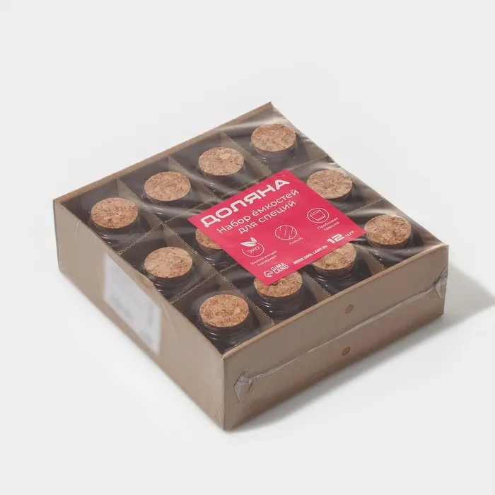 Набор баночек для специй с пробковой крышкой Доляна «Парфе», 50 мл, 5.4×4×5.4 см, 12 шт., стекло — Характеристики