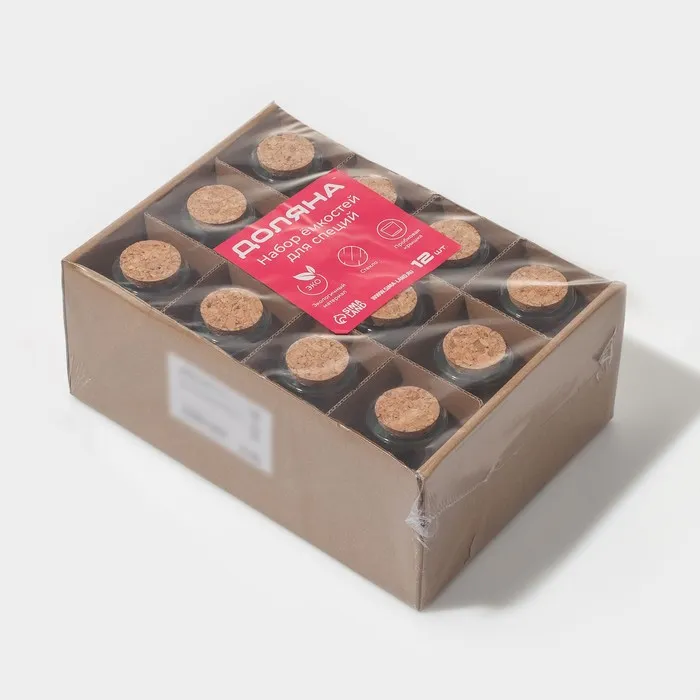 Набор баночек для специй с пробковой крышкой Доляна «Парфе», 70 мл, 4.5×8 см, 12 шт., стекло — Характеристики