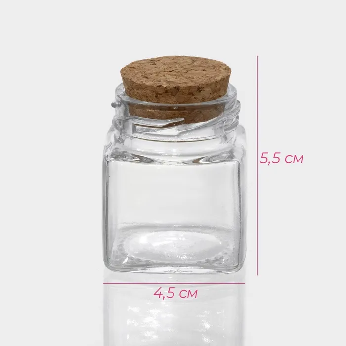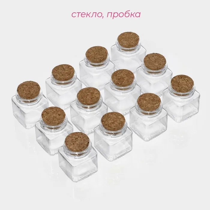 Набор баночек для сыпучих с пробковой крышкой Доляна «Парфе. Квадрат», 70 мл, 4.5×5.4 см, 12 шт., стекло — Характеристики