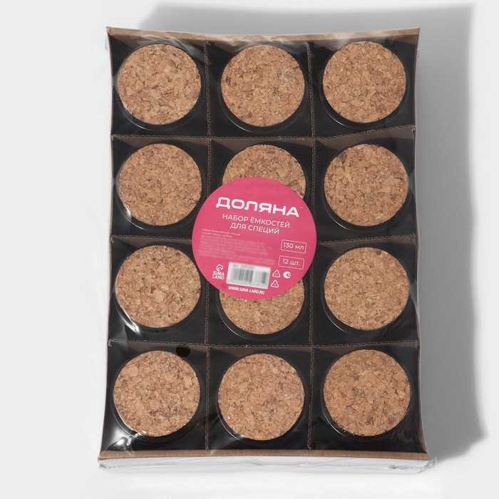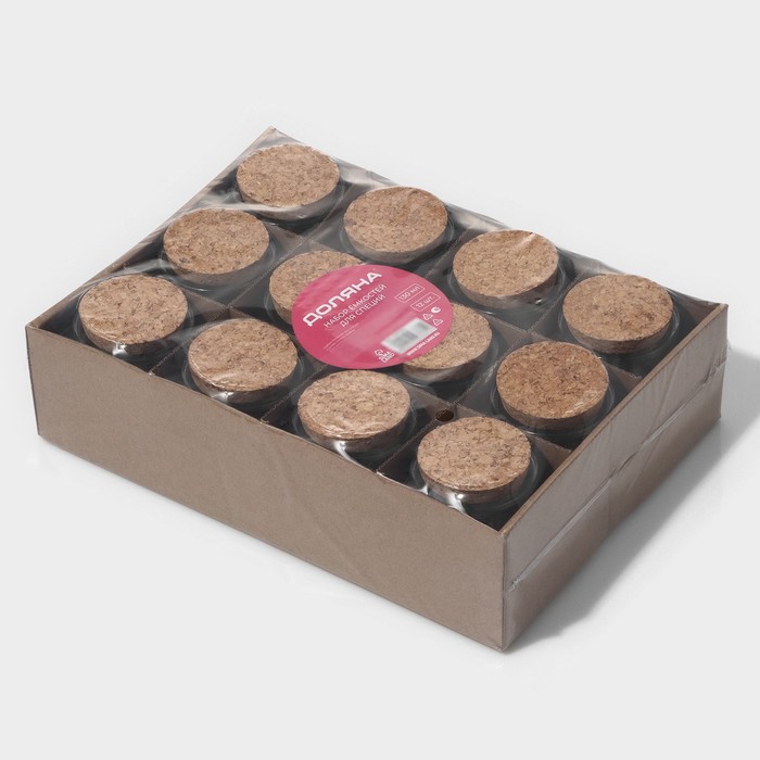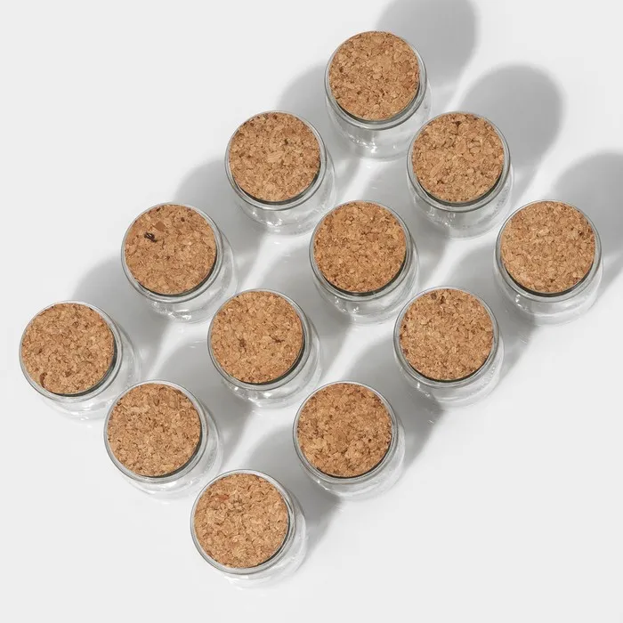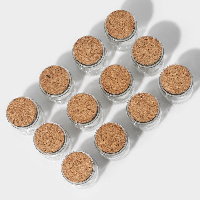 Набор баночек стеклянных для специй с пробковой крышкой Доляна «Парфе», 130 мл, 7×6,5 см, 12 шт — Характеристики