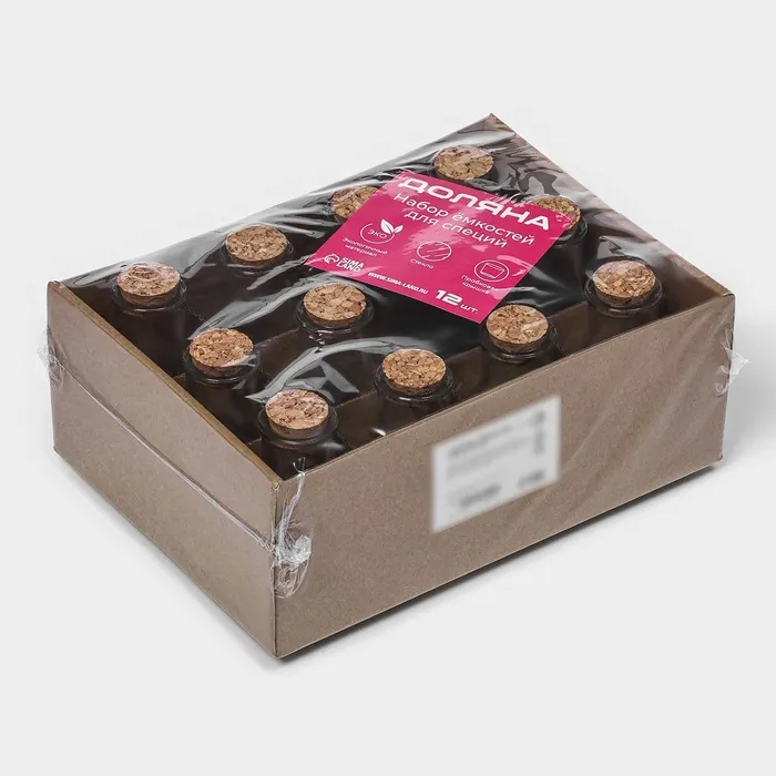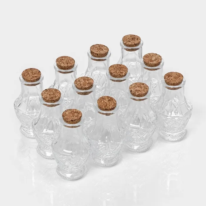 Набор банок для специй Доляна «Парфе», 50 мл, 5×8.4 см, 12 шт., с пробковой крышкой, стекло, прозрачный — Характеристики