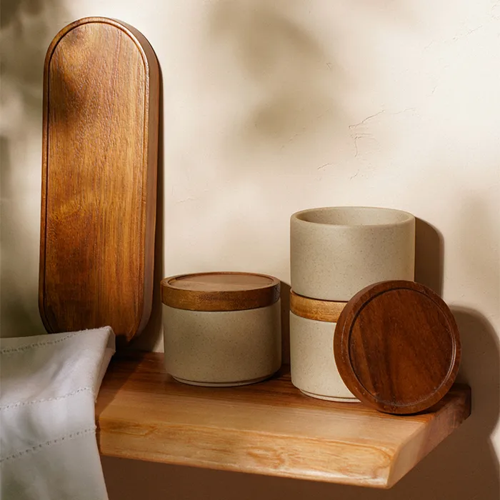 - Натуральные материалы: керамика и дерево акации обеспечивают долговечность и экологичность.