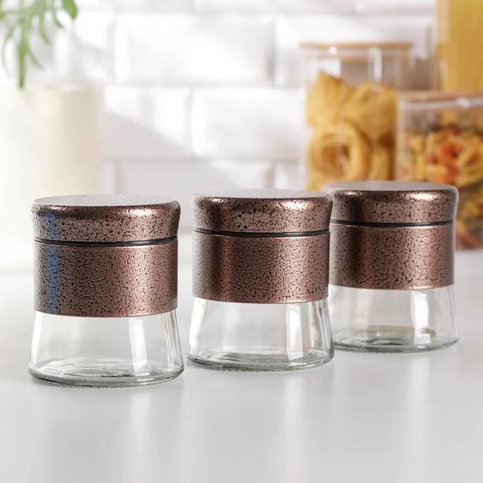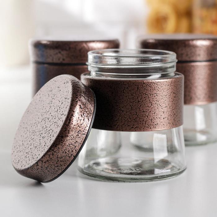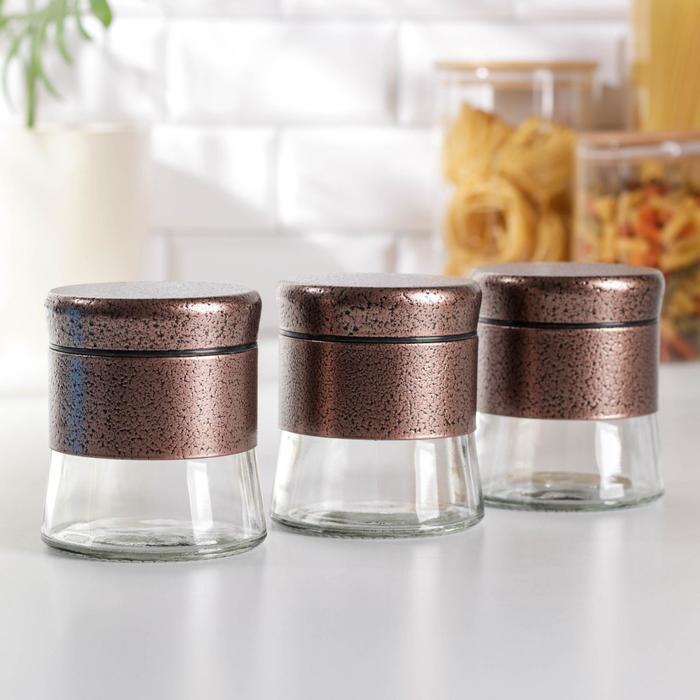Набор банок для сыпучих продуктов «Трио», 350 мл, 9,5×10 см, 3 шт, цвет бронзовый — Характеристики