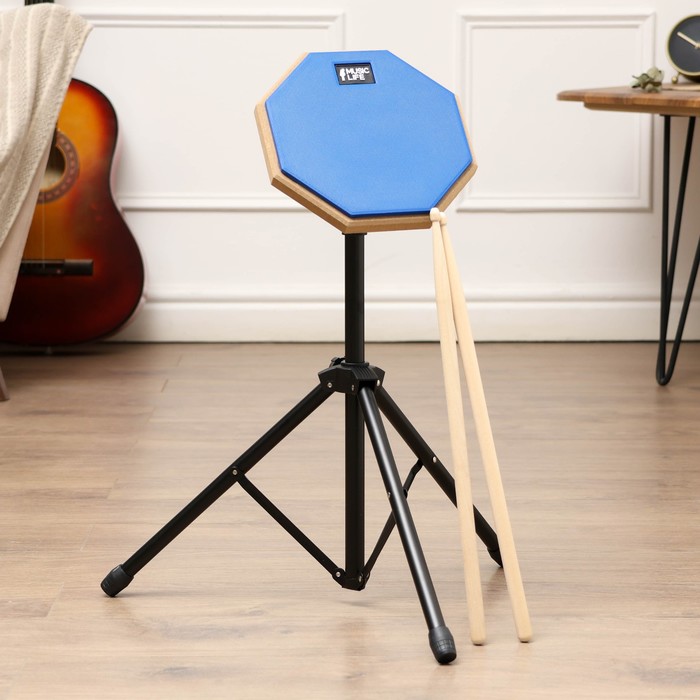 Набор барабанщика Music Life: пэд 8 дюймов, стойка, барабанные палочки, синий — Характеристики