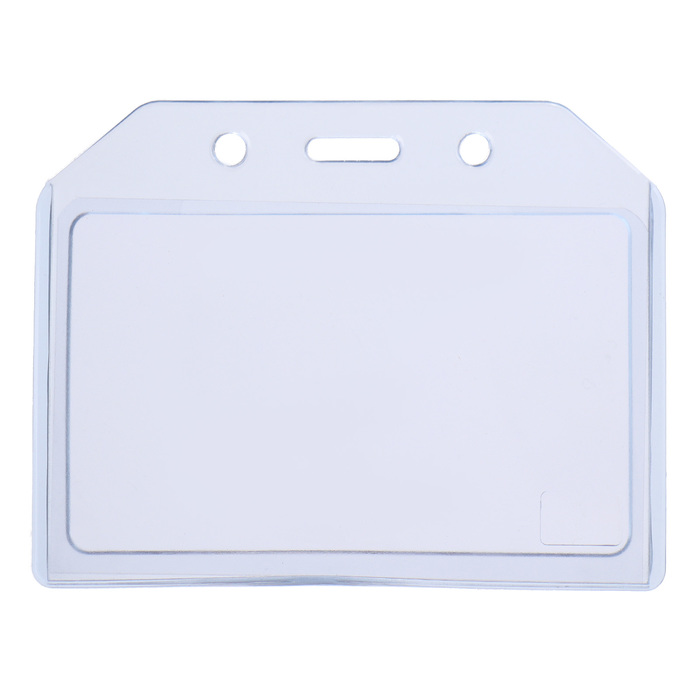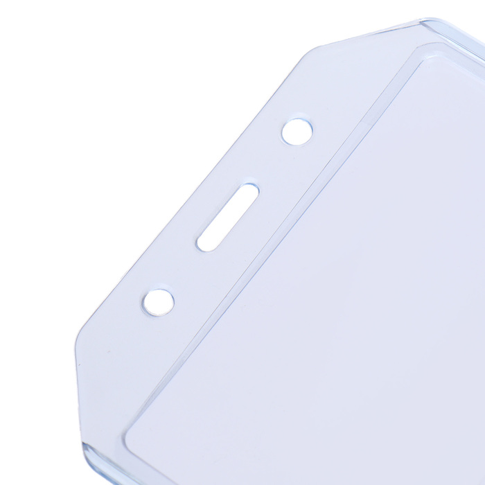 Бейдж горизонтальный. Материал бейджа - ПВХ, цвет - прозрачный. Имеет размер вставки 98х58 мм. Подходят для ношения именных карточек и пропусков.