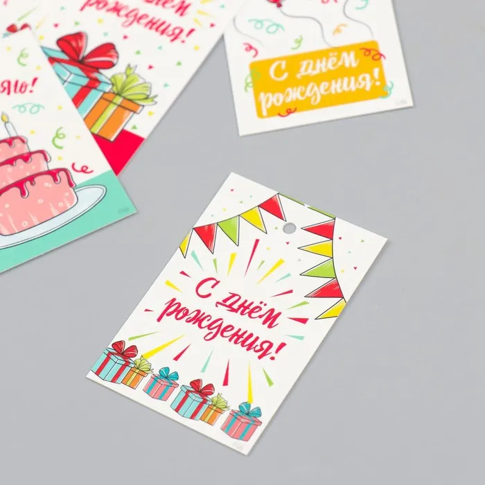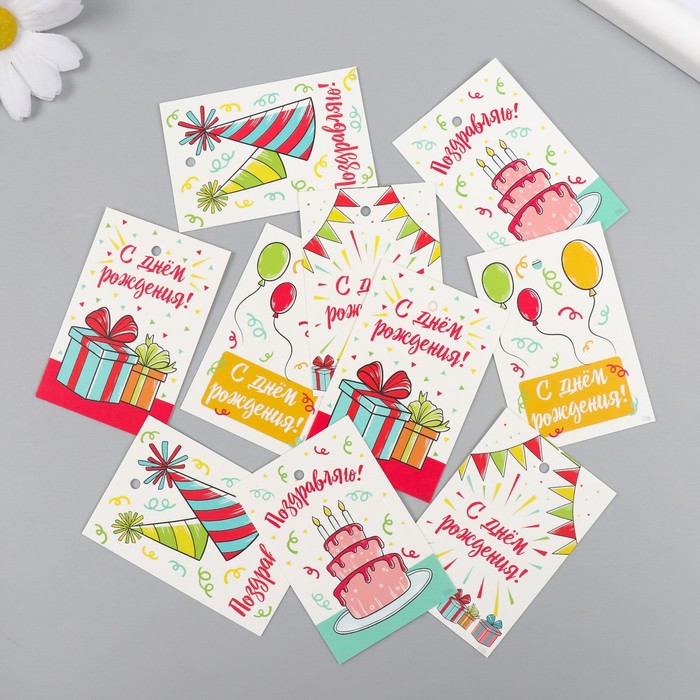 Набор бирок для подарков, цветов «День рождения», 10 шт. (5 видов), картон, 4×6 см — Характеристики