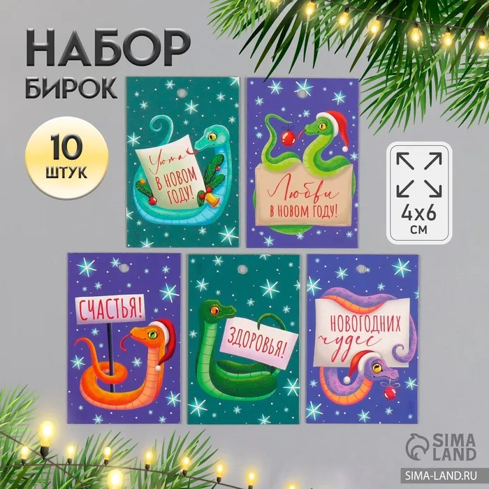 Набор бирок для подарков, цветов «Новогодних чудес», 10 шт. (5 видов), картон, 4×6 см