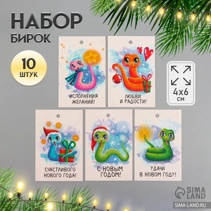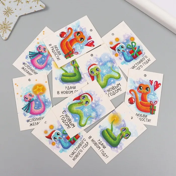 Набор бирок для подарков, цветов «Удачи в Новом Году. Змея», 10 шт. (5 видов), картон, 4×6 см — Характеристики