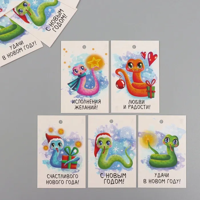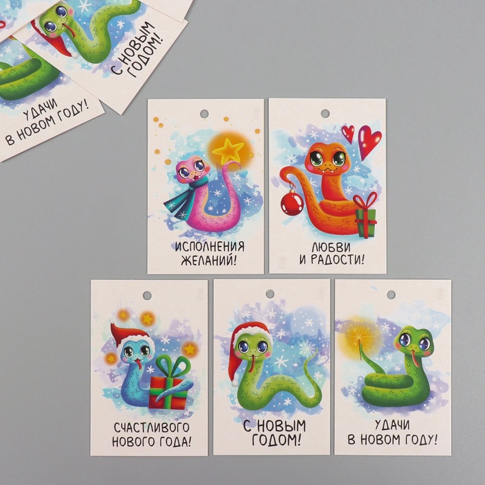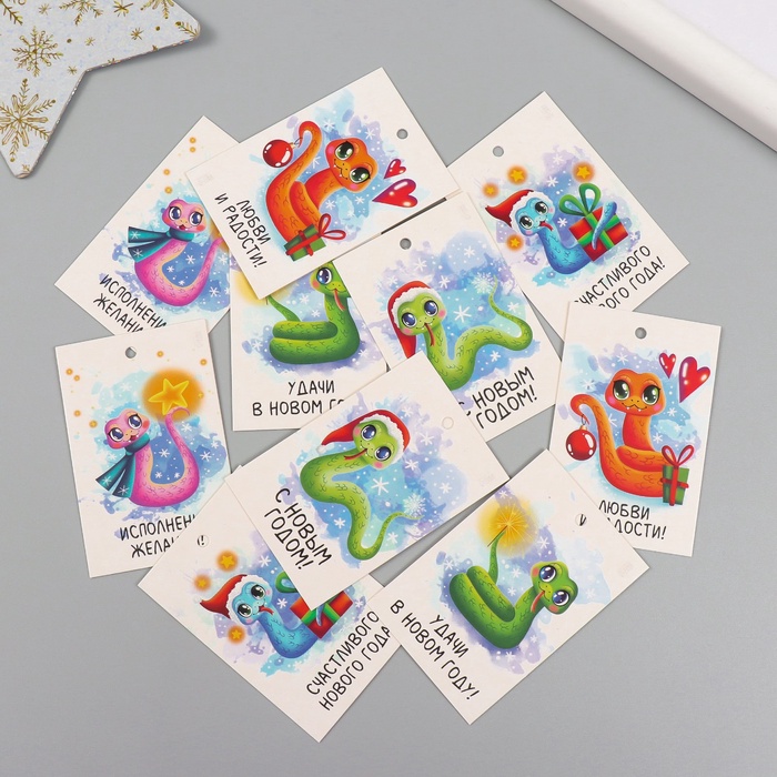 Набор бирок для подарков, цветов «Удачи в Новом Году. Змея», 10 шт. (5 видов), картон, 4×6 см