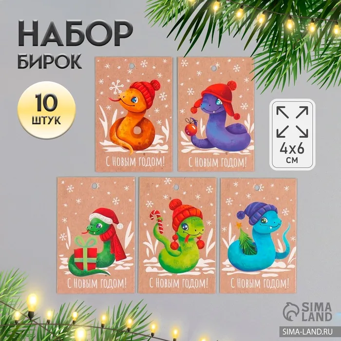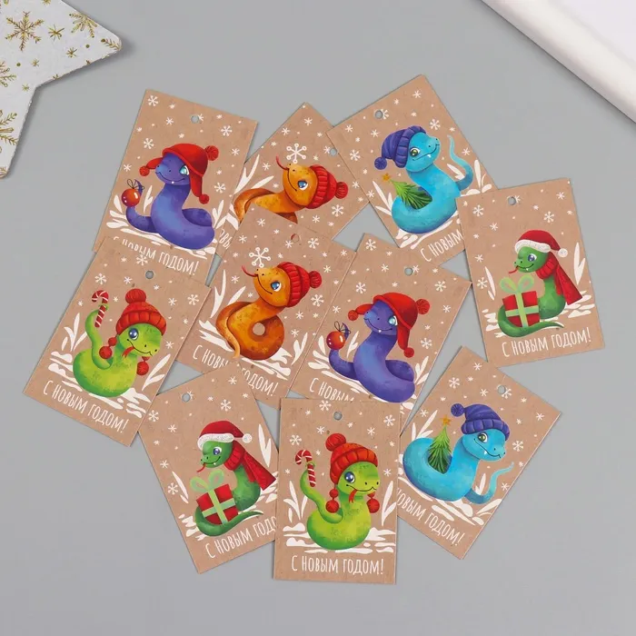 Набор бирок для подарков, цветов «Змейки», картон крафт, 10 шт. (5 видов), 4×6 см — Характеристики