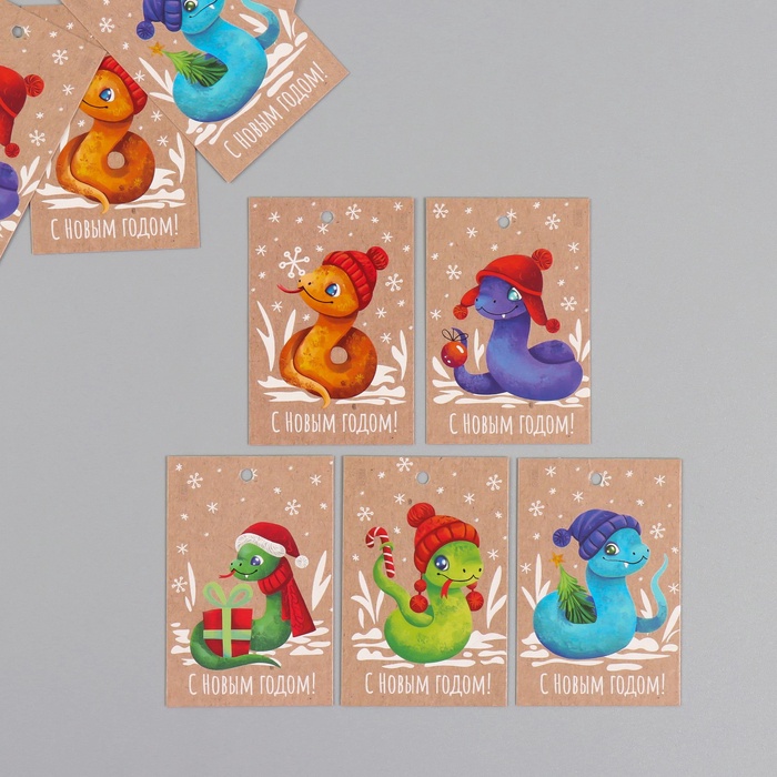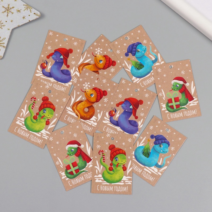 Набор бирок для подарков, цветов «Змейки», картон крафт, 10 шт. (5 видов), 4×6 см