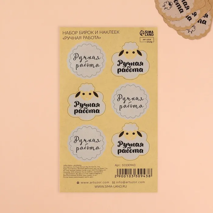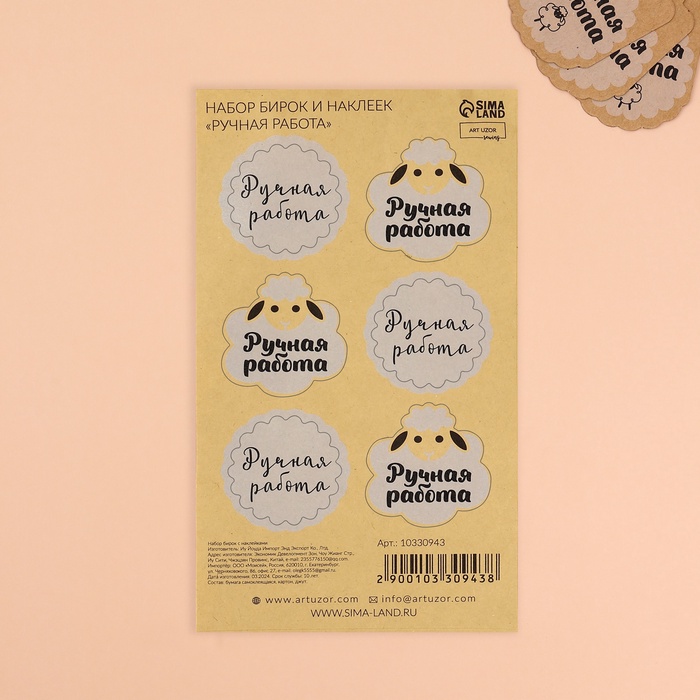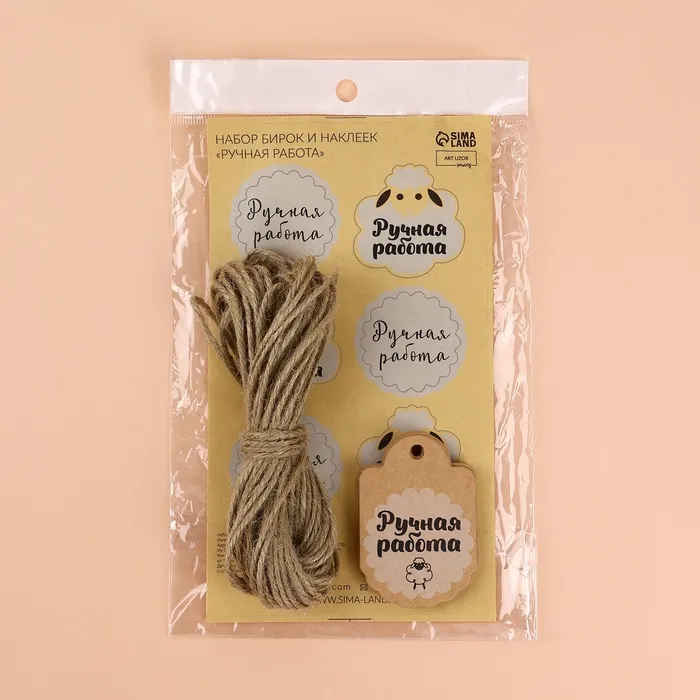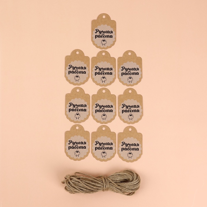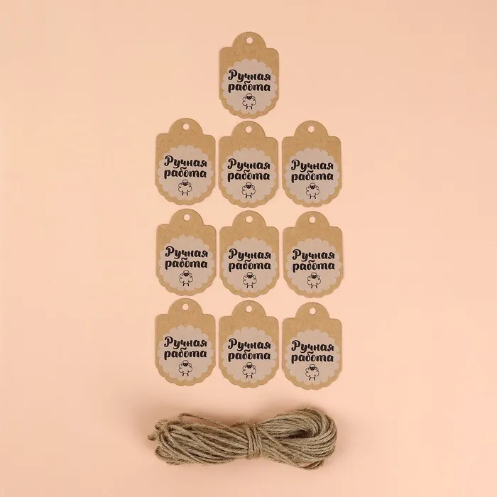 Набор бирок с джутом и наклейками «Ручная работа», крафтовый, 10 шт., 4.1×6 см/6 шт., 3.9×4 см — Характеристики