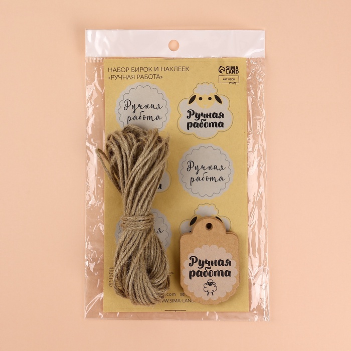 Бирки с наклейками — незаменимые аксессуары для рукоделия. Они добавят изделиям шарма, помогут забрендировать их, сделать акцент на эксклюзивности и высоком качестве, внести завершающий штрих при упаковке. Каждая бирка и наклейка украшены надписью «Ручная работа». Приятный бонус — джутовый шнурок.