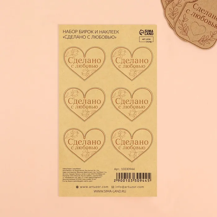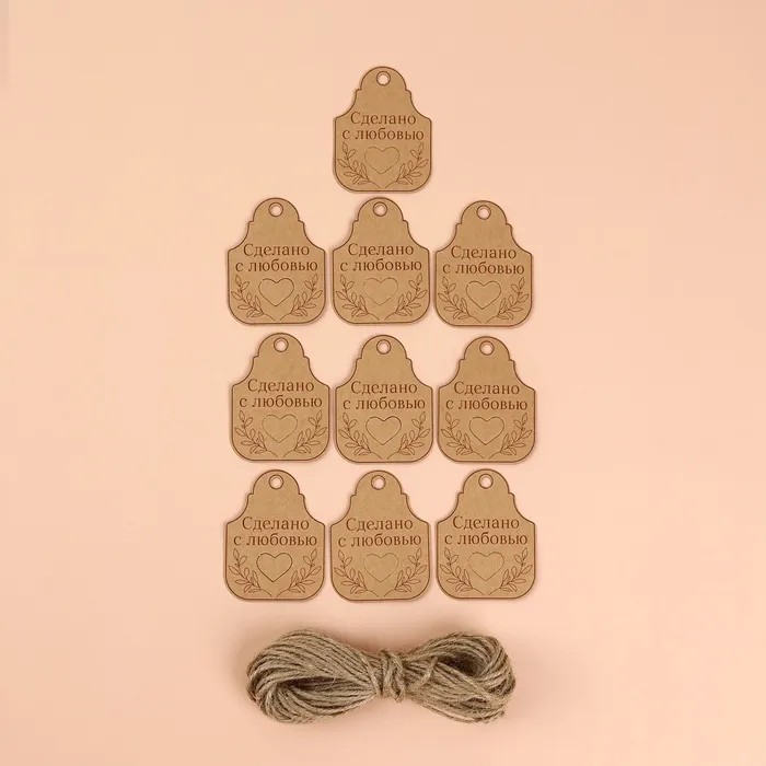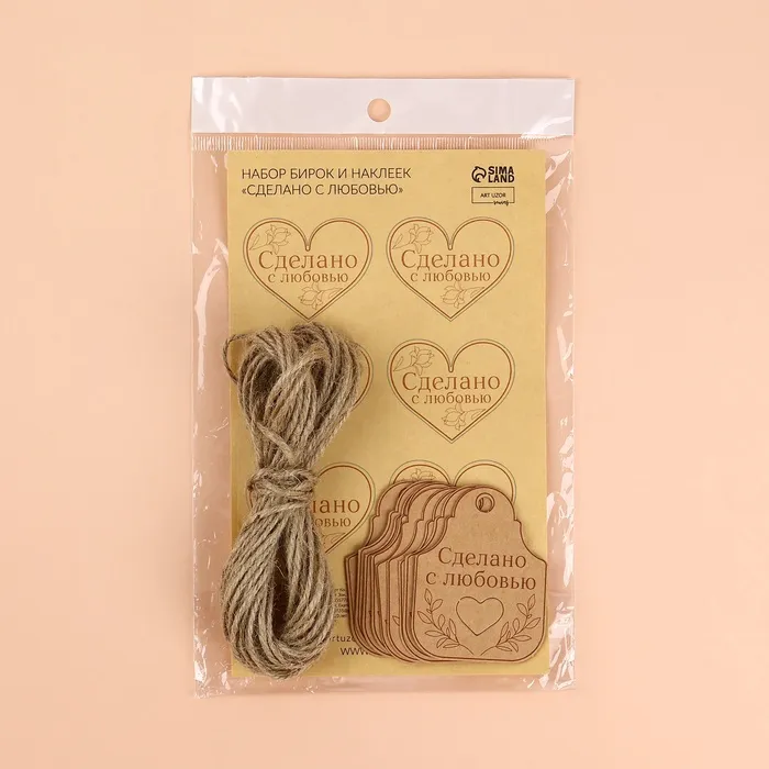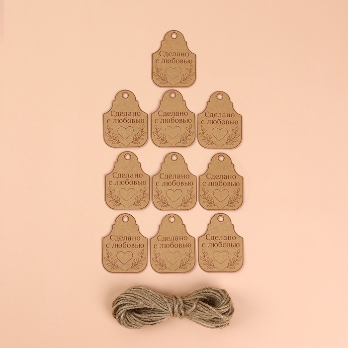 Набор бирок с джутом и наклейками «Сделано с любовью», крафтовый, 10 шт., 4.7×6 см/6 шт., 4.2×3.5 см — Характеристики