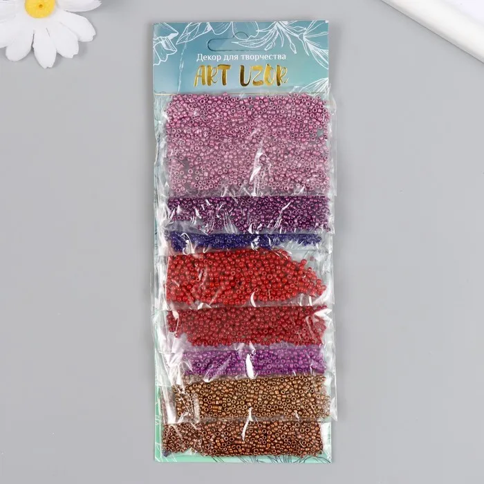 Набор бисера для плетения круглый «Арт Узор. Красно-фиолетовые», 12/0, металлик, 8 цветов х 10 г, 20×8 см — Характеристики