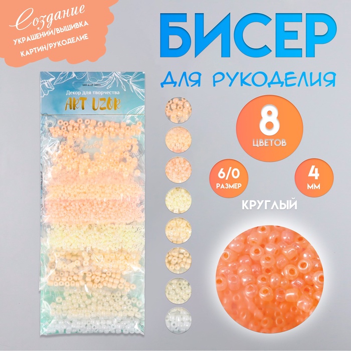 Набор бисера для плетения круглый «Арт Узор. Нежные цвета бело-жёлто-розовый», 8 цветов × 10 г, для рукоделия — Характеристики