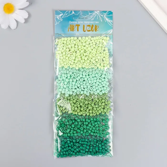 Набор бисера для плетения круглый «Арт Узор. Палитра зелёного», 6/0, 5 цветов × 20 г 20×8×0.7 см, для рукоделия — Характеристики