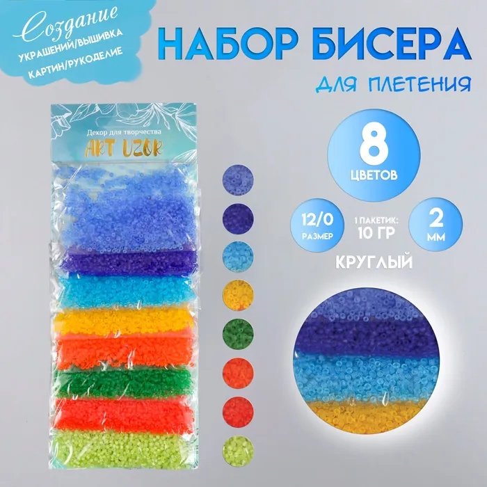Набор бисера для плетения круглый «Арт Узор. Разноцветный матовый», 12/0, 8 цветов × 10 г, 20×8 см, для рукоделия